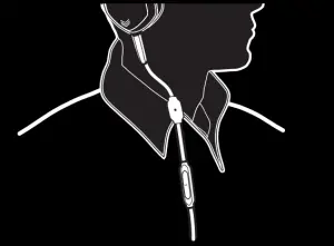 - When wearing headphones wired (with cable connected), hang cable in front of your head to ensure headphones stay put during strenuous activity