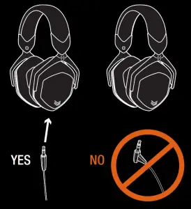 - When using the included cable, insert straight plug into earcup (not 45º angled plug)