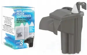 Change the filter cartridge every three to four weeks or when heavily soiled, depending on the number of fish in your tank and the amount of daily feedings. Filter uses Koller Products replacement filter cartridges size Small (AQ10FC-30) available at online retailers.