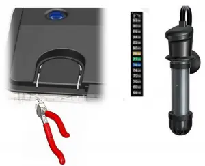 If you are adding an optional heater locate the knockout section at the back of the hood as shown below. Mount heater inside tank near to the slot.