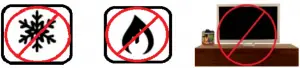 - Near direct sources of heat or air conditioning (e.g. radiator, forced air vent).
