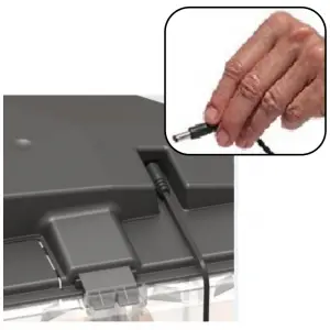 Insert the USB connector plug into the power port on the hood. Then plug power adaptor into a 120 volt outlet.
