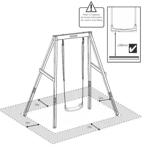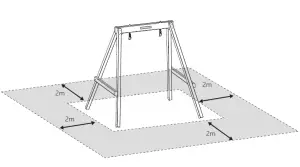 - Your swing frame must be attached on a flat horizontal surface with a minimum of 2m between it and any structure or obstacle such as a fence, garage house, tree branches, cloths lines, or electric cables.