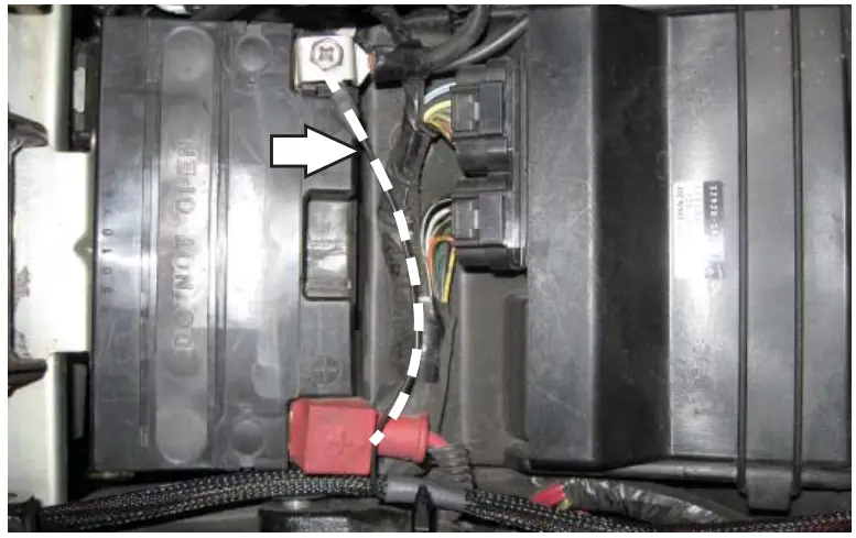 - Attach the ground wire from the PC6 to the negative side of the battery as shown.