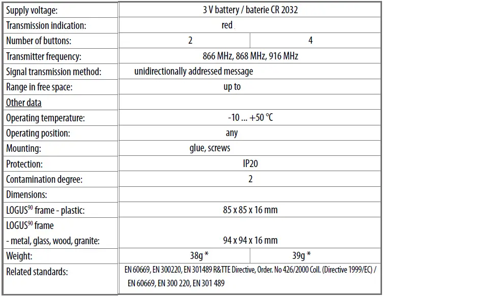 - In LOGUS90 switch frame design (plastic, glass, wood, metal, stone).