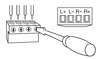 - Heavy-duty screw-type connectors supporting 12-18 AWG speaker wire