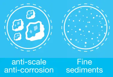 ![]() | Sediment, hardness, Corrosion. White build-up on glassware and showerheads. | SCALE-SEDIMENT FILTER 5 Micron Melt blown polypropylene two stage sediment & scale reduction water conditioning filters ![]() | ![]() |