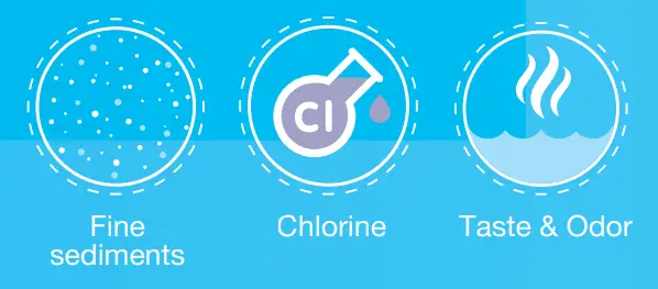 | Sediment/Rust, particulate, brown/black staining on fixtures. | SCALE-SEDIMENT FILTER CARBON BLOCK FILTERS 5 Micron Grooved media improves sediment retention, service time, filtration surface and flow rates. ![]() | ![]() | |