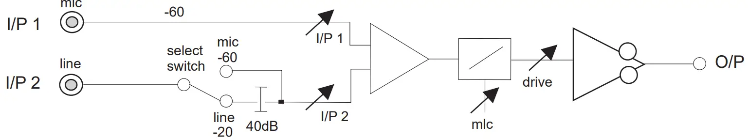 - Position ‘INPUT 2 SELECT’ slide switch for Line or Mic as required.