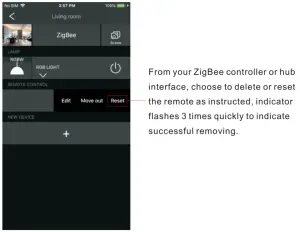 4) After TouchLink, the remote can control the linked lighting devices. - Removed from a Zigbee Network through Coordinator or Hub Interface