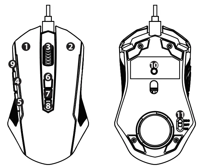 - Report rate switch: 125Hz/250Hz/500Hz/1000Hz four-level switching.