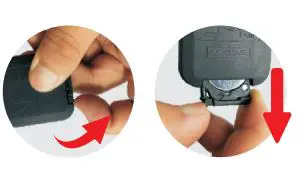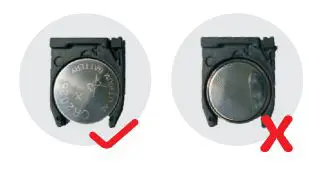 Place the new battery with the correct side up front.