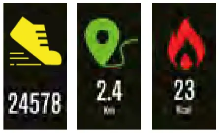 STEP COUNTER The band will record your daily activity automatically. Press the touch key to switch between steps, calories & distance.