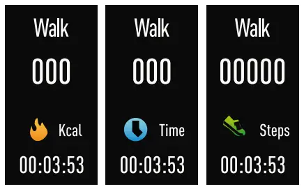 You can choose the mode you need, after your activity, the band will record your sports data. After your exercise, you can press the touch screen to stop your movement and save it. Note: If the activity time is less than one minute, the data will not be recorded. From settings & goals in your App. you can set activity goals to work toward.