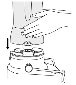 - Place the juicer cover over the filter bowl surround, positioning the lower part of the feed chute over the stainless steel filter basket.