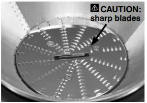 - Do not push food into the feed chute with your fingers or other Always use the food pusher provided. Do not place hand or fingers into the food chute when it is attached to the appliance.