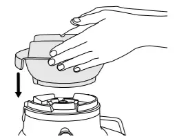 - With the blender jug in the upright position place it on the motor base. The handle of the blender can be positioned to the left or right-hand side of the appliance.