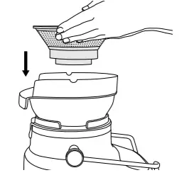 - Optional: For juicing into a cup the Juicing Nozzle can be fitted onto the juice outlet nozzle.