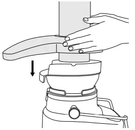 - Raise the safety locking arm up and locate into the two grooves on either side of the juicer cover.