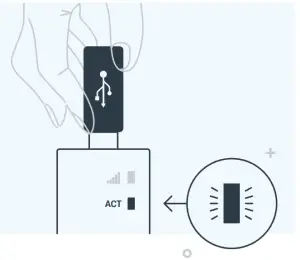 No matter your situation, you can always connect your machine to the cloud. The IX router provides wired (Ethernet), 4G or Wi-Fi connectivity options. Registration starts immediately upon inserting the USB flash drive. Once the ACT led status is steady blue, the IX router is connected to the IXON Cloud and will automatically show up in your company account.