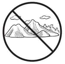 - Proper signal reception can be difficult or even impossible under the conditions listed below