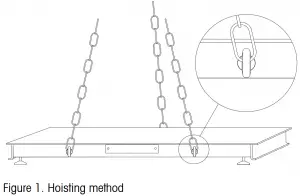 - Available hoisting methods include the use of eye bolts and chains (not included). All models have unthreaded holes at 3 locations, two 3/4”-10 holes on the front panel and one 3/4”-10 hole on the back panel. See figure 1.