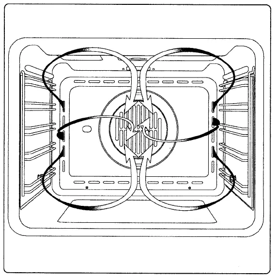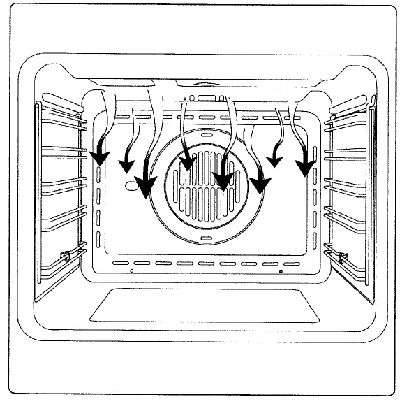 For this type of cooking a fan positioned at the back allows the circulation of hot air inside the oven, creating uniform heat. In this way cooking is more rapid than conventional cooking. It is a suitable method for cooking dishes on more than one shelf, especially when the food is of different types (fish, meat etc.)