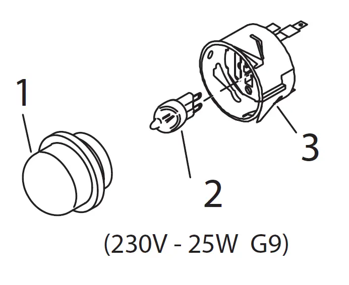 - Remove the light bulb (2) from its socket (3).