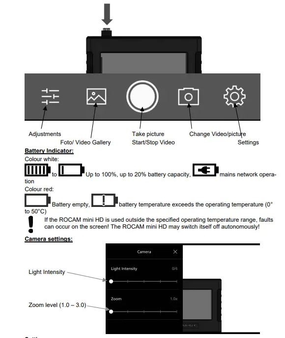 ROCAM mini HD must be protected against water and must only be cleaned with a damp cloth!