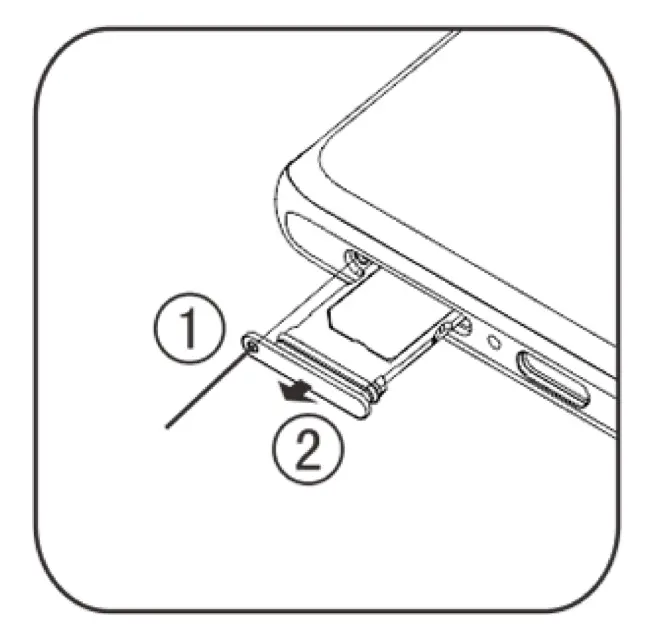 - Touch screen facing up, follow the direction of the arrow to install the tray (with Nano card) into the phone.