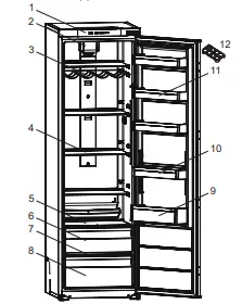 - Defrosting occurs automatically in the refrigerator compartment during operation. The water is collected by the evaporation tray and evaporates automatically.