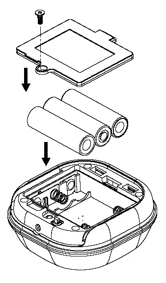2. Put the 3 * AA 1.5V batteries in the battery compartment.