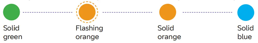 Solid | Your hub is working but isn’t connected to the internet Connect a device, open a new web browser window and follow the help wizard to get connected. |