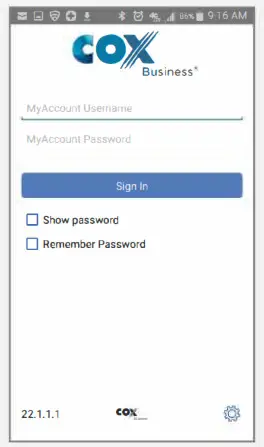 2 Enter your MyAccount user name and password. Optional: Tap the Show password box to display the password as you type.
