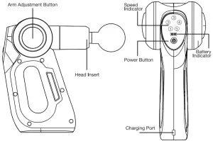 - Press and hold the power button for 3 seconds to turn the massager OFF. * After five minutes of non-use, the massage gun will automatically power OFF.