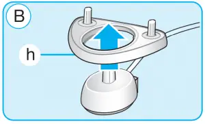 - You may use your toothbrush right away or charge it briefly by placing it on the plugged-in charger (g). Note: In case the battery is empty (no charging light illuminated (e/f) while charging or no reaction when pressing the on/off button (c)), charge at least for 30 minutes.