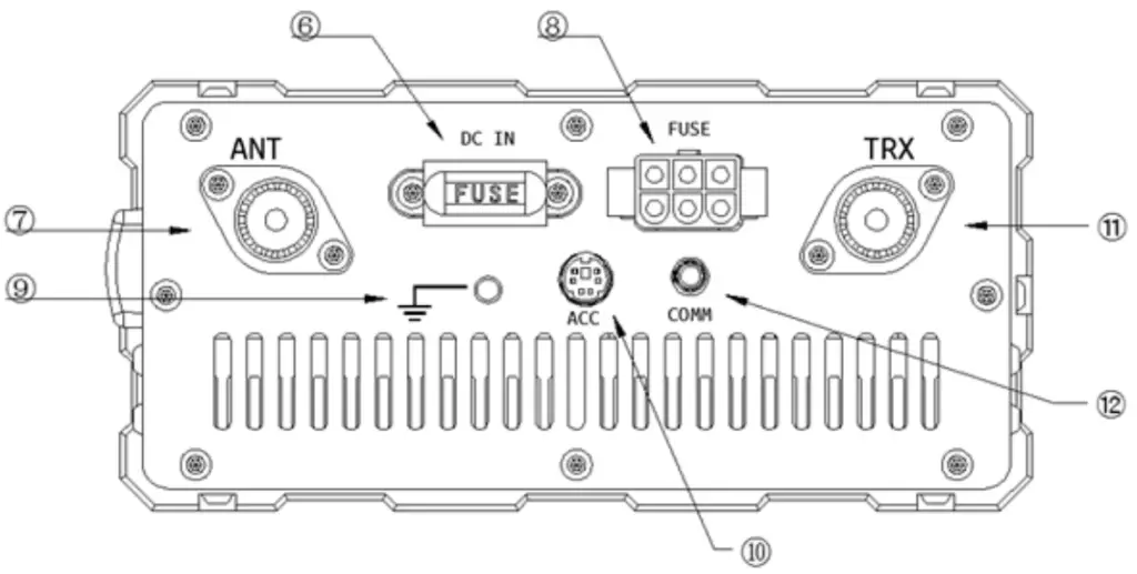 11 TRX Socket: The TRX interface is connected to the transceiver output, the connector model is SL16-K.