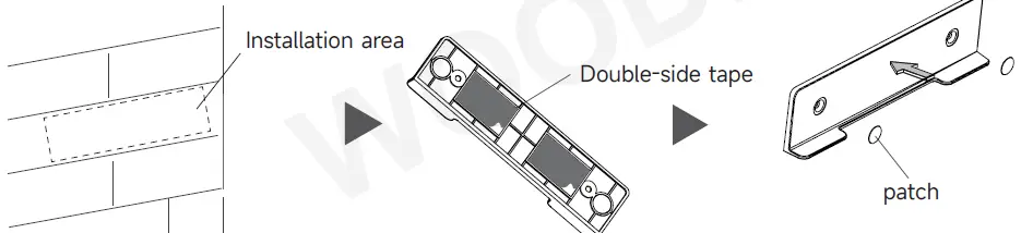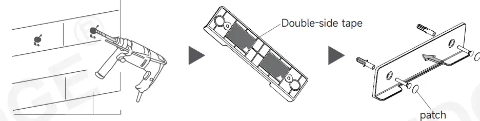 - Stick the holder to the wall horizontally and then stick the patch with tape.