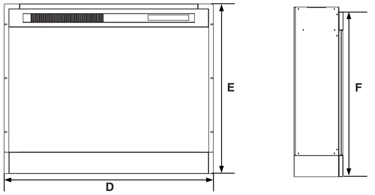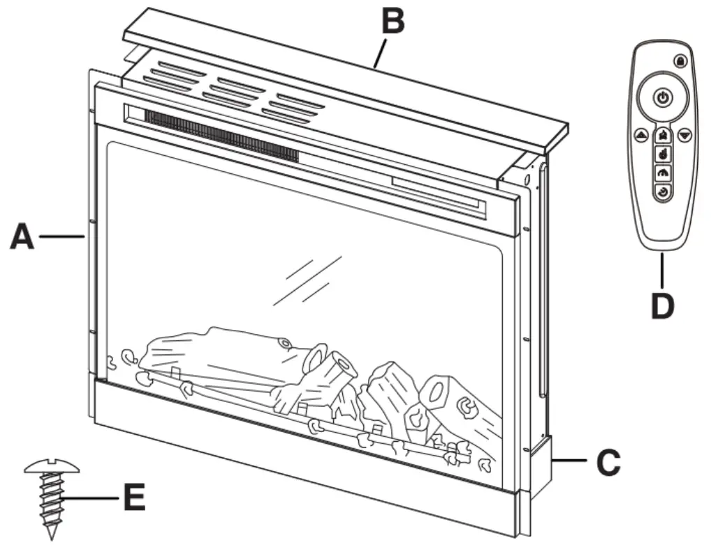 - The trims (B & C) are packaged with the fireplace. Before installation, remove the trims from the back of the fireplace.