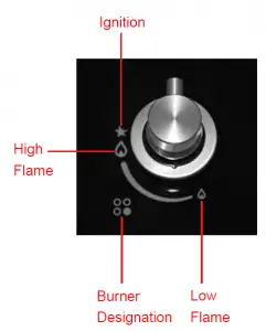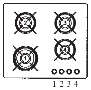 When the gas burner has been turned according to need. The minimum position is found at the end of the anti- clockwise rotation direction. In models with automatic ignition, operate the knob as described above, pressing simultaneously, the cor- responding push-button.