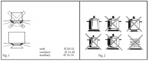 N.B. – we recommend the use of pots and pans with a diameter matching that of the burner, thus preventingfrom the bottom part and surrounding the pot
