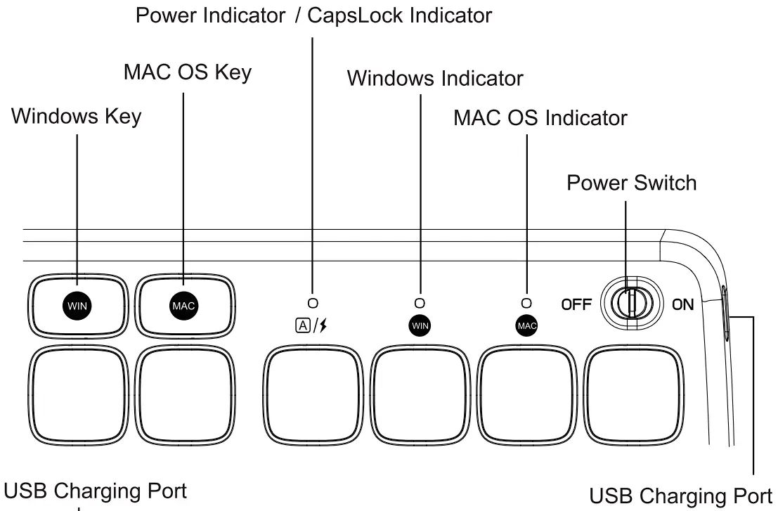 Low power prompt: When the power of the keyboard and mouse is lower than 3.4V, the red light of the low power prompt light will flash once a second, please charge it in time or it will affect the normal use.