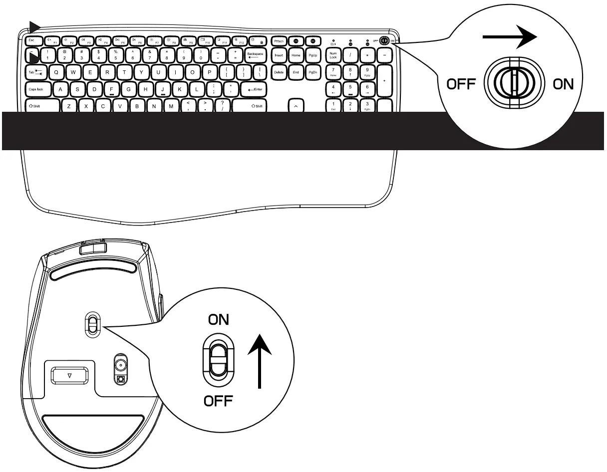 - Switch both the keyboard and mouse power ON.