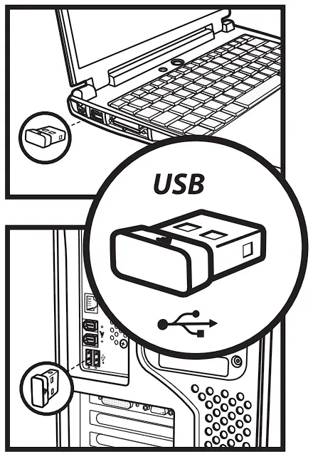 - Plug receiver into the USB port.