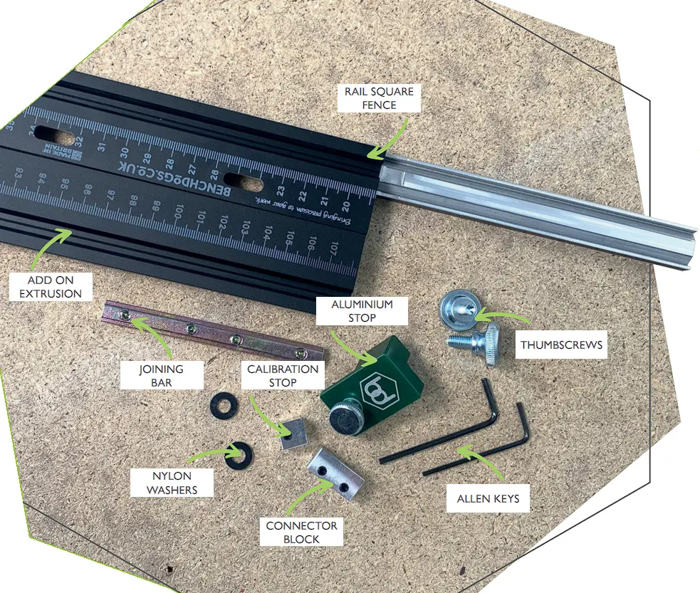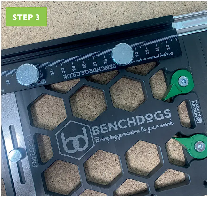 - Attach your fence to your rail square using the thumbscrews.