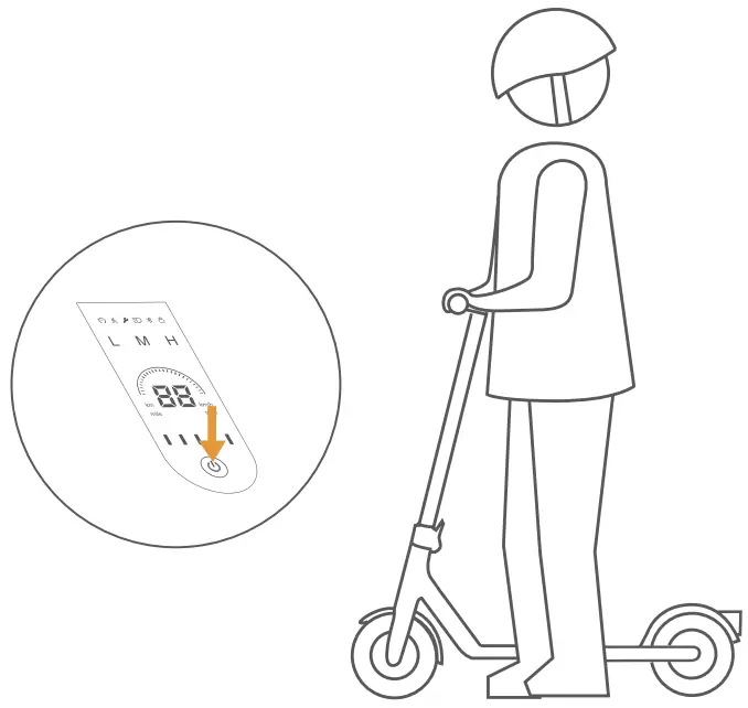 - Press the power button to turn on the scooter and check the battery level. If the battery level is too low, please charge it in time.