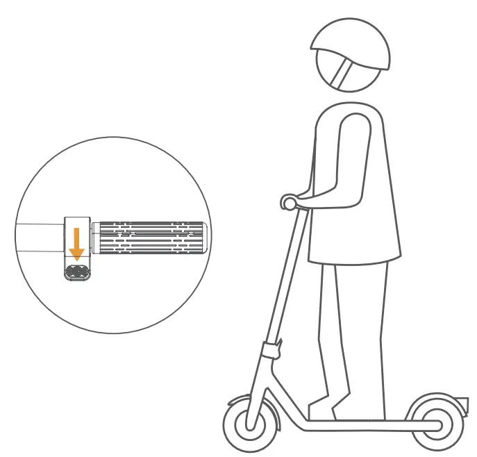 - Stand with your right foot on the pedal and thrust against the ground with your left foot. When the speed of the scooter is ≥ 4 km/h, press the accelerator to start the motor,and keep speeding.