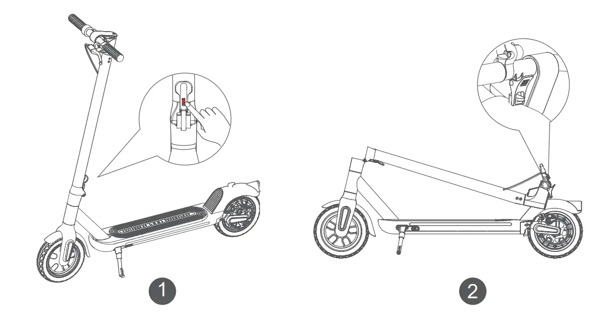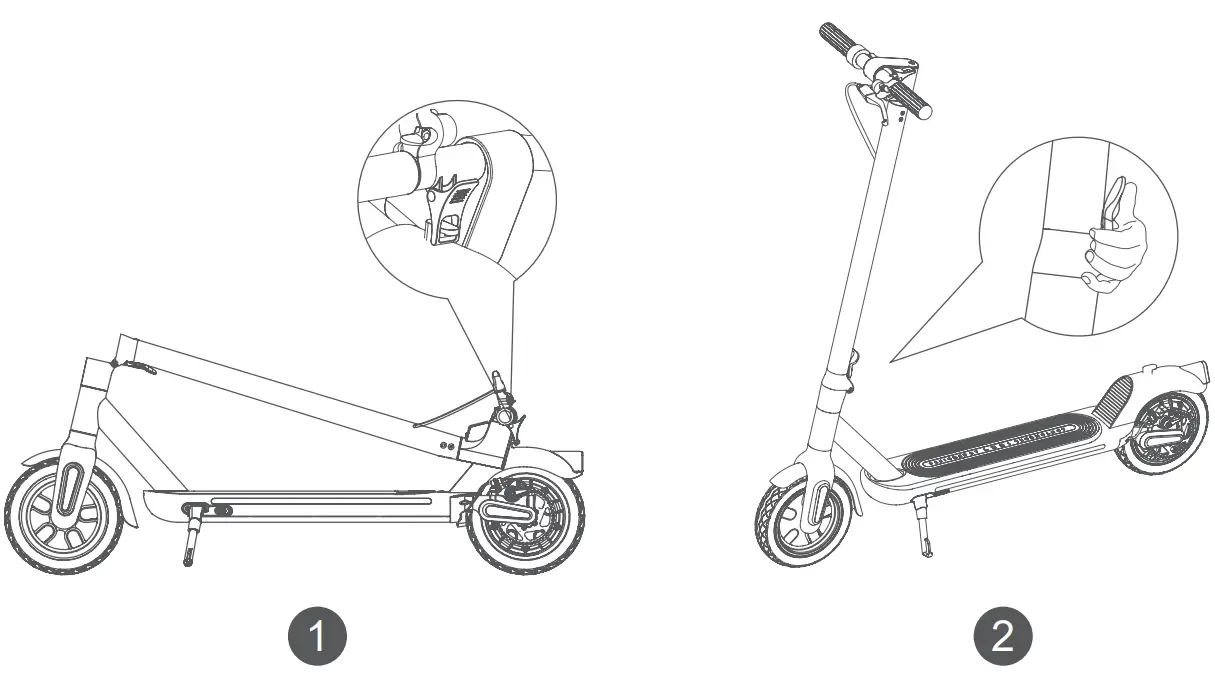 - Straighten the front tube, close the folding handle, and press the folding handle to check whether it is locked.