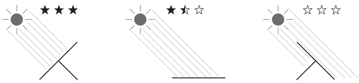 The power output module has three power output indicators ⑧ that may be used to help position the panel to deliver optimal power. The panels are in an optimal position when the three indicators are illuminated. It is only possible to illuminate all three indicators when the device is connected to a load capable of drawing more than 25W of continuous power.