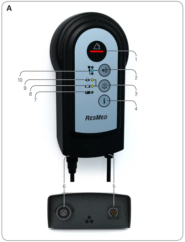 - Do not disassemble the Remote Alarm, it has no userserviceable parts inside; if damaged or defective, it should be returned to your ResMed representative.